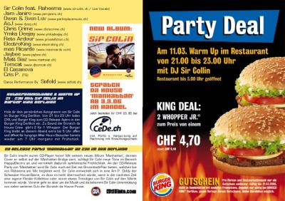 Heute Abend (ich war noch nicht im Bett darum ist für mich noch immer Samstag) hatte Sir Colin alias Engin alias Entschin seine CD Release Party. Zuvor war er noch von 21.00-23.00 Uhr im Burger King für eine Autogrammstunde.